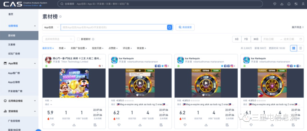 前面介紹了如何拆解素材,那么拆解的原材料素材從何而來呢?創(chuàng)意來源從哪里找?在我看來,熱云數(shù)據(jù)CAS海外版或許能為我們提供新的解決思路。