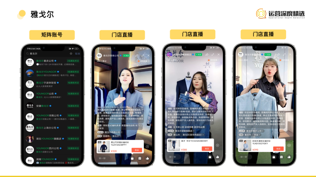 雅戈爾作為男裝品牌,同樣是將線下門店搬到了線上視頻號直播,組成了全國矩陣賬號。雖然各個區(qū)域門店的背景布置、主播能力各有不同,但貨品都是大致相同,都是當下門店的熱銷款式。/ 日常慢直播模式: