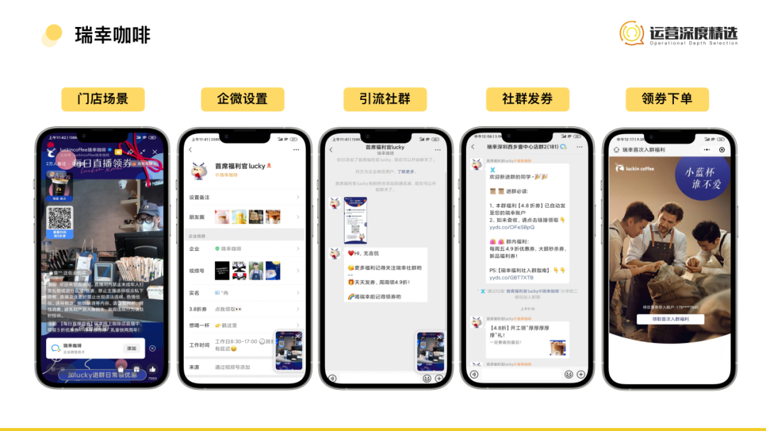 在今年頭部方便面品牌都被“土坑酸菜”坑了一把的情況下,白象除了聲明“沒合作,放心吃,身正不怕影子斜”外,還順勢在視頻號發(fā)起了生產(chǎn)線慢直播,將鏡頭對準車間各個生產(chǎn)環(huán)節(jié),從面粉到面餅,從配料到成品,一包方便面的全生產(chǎn)流程用戶都可以進行“云監(jiān)工”。用戶在近距離感受白象食品工廠生產(chǎn)線的自動化和智能化的同時,也會對直播畫面中干凈整潔的生產(chǎn)環(huán)境也會印象深刻。雖然不帶貨,但帶來的品牌價值卻很高,在用戶心中潛移默化植入了品質(zhì)有保障的心智,下次在貨架前面對不同牌子的產(chǎn)品時,選擇白象的概率也會更高。    瑞幸咖啡
