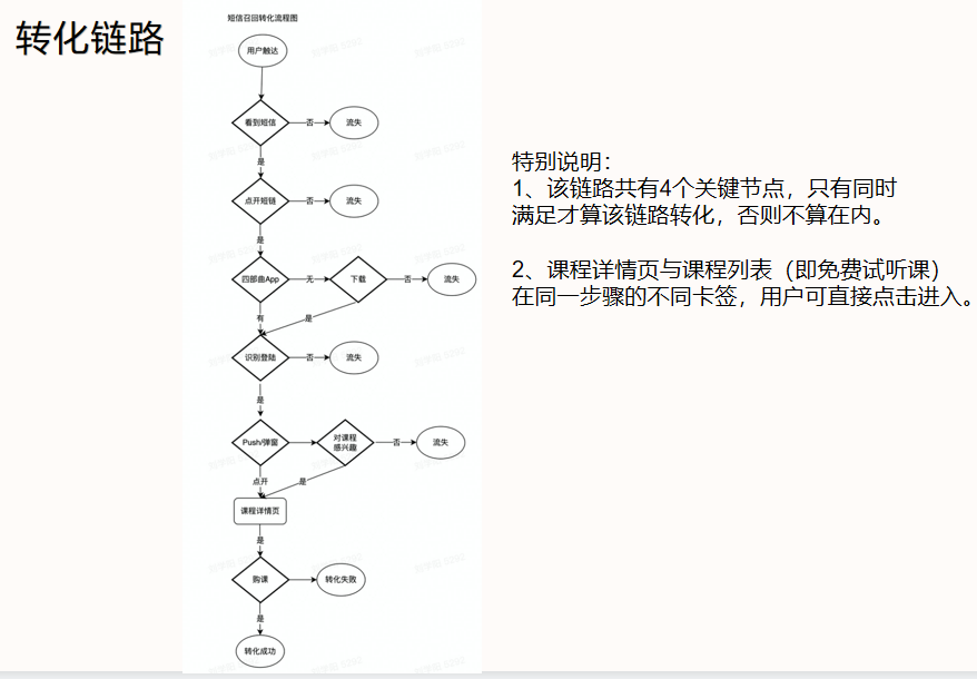 另外一點就是需要明確這些召回來的用戶路徑,讓用戶有一個順暢的路徑對于提升轉(zhuǎn)化率也是非常有幫助的,其實這也是明確策略影響范圍和口徑的問題,避免出現(xiàn)很多無效的流量也走到這個路徑,導致轉(zhuǎn)化率下降。
