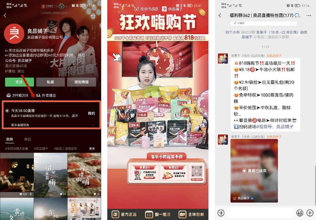 直播群:【良品直播粉絲團(tuán)】,主要是介紹直播福利,引導(dǎo)用戶預(yù)約直播或觀看直播等。