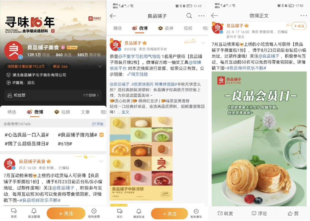 良品鋪?zhàn)釉谖⒉┯?39w粉絲,主頁面內(nèi)有粉絲群的引導(dǎo),用戶可申請(qǐng)加入。微博主要內(nèi)容包括品牌宣傳、活動(dòng)宣傳、產(chǎn)品推廣等。