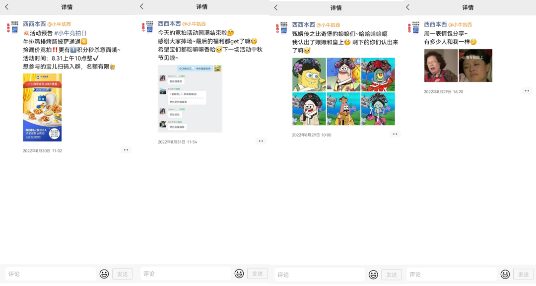 值得一提的是,員工朋友圈的內(nèi)容較為多樣化,以生活日常、產(chǎn)品安利、社群活動(dòng)、產(chǎn)品活動(dòng)為主。文案多用生活化風(fēng)格表示,更能展現(xiàn)真實(shí)的IP形象,而不是一個(gè)冷冰冰的客服。