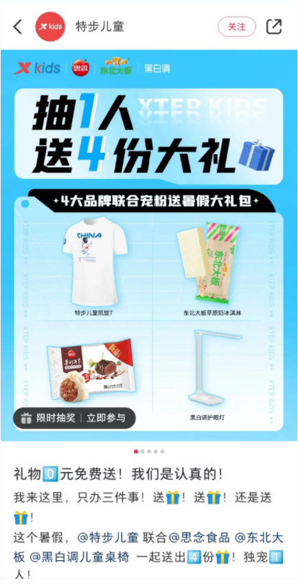 除了品牌方自己發(fā)布抽獎筆記之外,還可以與其他各品牌進行聯(lián)合,共同發(fā)起抽獎,擴大品牌之間的影響力,實現(xiàn)共贏。