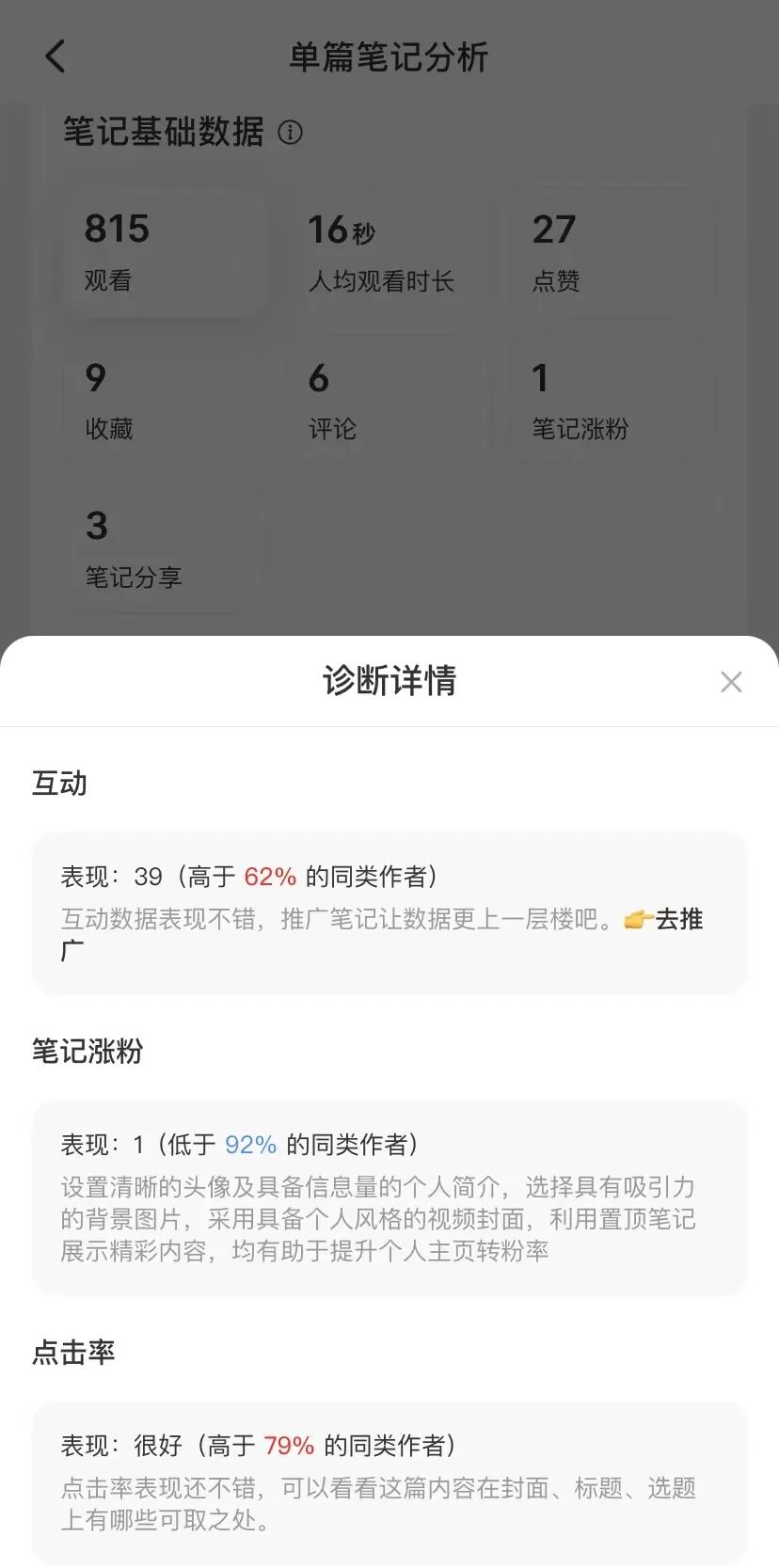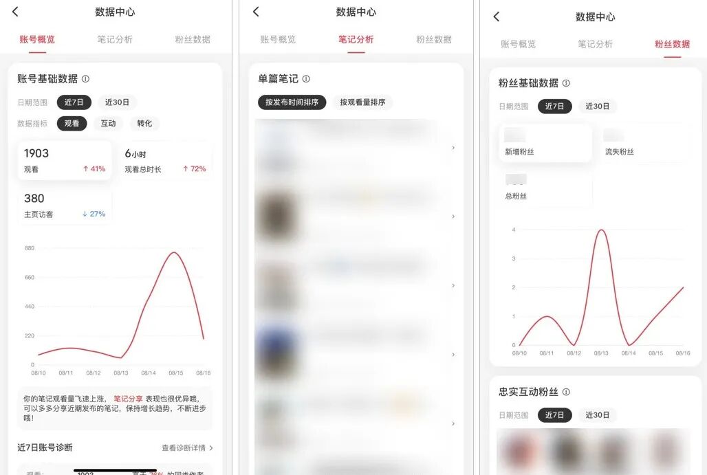 在小紅書的“創(chuàng)作中心”,能看到自己的賬號整體數據、每一篇筆記的數據,以及粉絲數據,并且還會做出基本分析。