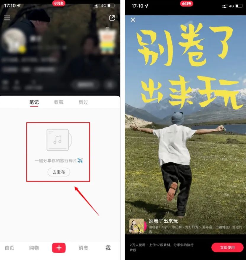 第二件事,引導越來越多的用戶在平臺發(fā)布內容。不管是通過什么方式挖掘來的創(chuàng)作者,不管是引入明星、KOL 還是 MCN,他們的入駐代表運營的開始而非結束。一個簡單的“入駐”動作是遠遠不夠的,真正意義上的創(chuàng)作者需要在平臺創(chuàng)造價值,比如發(fā)布一篇筆記。在用戶入駐平臺后,平臺運營需要第一時間讓他們接觸到發(fā)布任務體系,幫助用戶完成發(fā)布第一篇筆記。對于我們普通人來說,來到一個新的內容平臺,從看內容到發(fā)內容還有很多疑惑需要解決,比如:常見的引導用戶發(fā)布第一篇內容會有平臺積分、現(xiàn)金紅包等獎勵,比如 B站曾經用“投稿必得 5 元”激勵用戶發(fā)布首個作品。來看下小紅書目前是如何做的。對于解決“發(fā)什么,怎么發(fā)”這兩個問題,小紅書可以說是很周到了。首先是降低用戶的創(chuàng)作門檻,比如在個人主頁的地方,通過“一鍵分享你的旅行碎片”加上對應的視頻模版工具,手把手教你發(fā)什么,怎么發(fā)。除此之外,在個人創(chuàng)作中心主頁,還會給從未發(fā)過內容的用戶推薦“低門檻”話題。比如,“我拍下的今日天空、相冊里的第一張照片、我的第一篇筆記”等。除了固定的低門檻話題之外,小紅書每周還會給用戶推送當周的熱門話題,幫助新用戶把握平臺的熱點方向,快速獲得流量。平臺相當于把“發(fā)什么火”的答案都告訴用戶了。新手還是不知道發(fā)什么筆記?不存在的。02