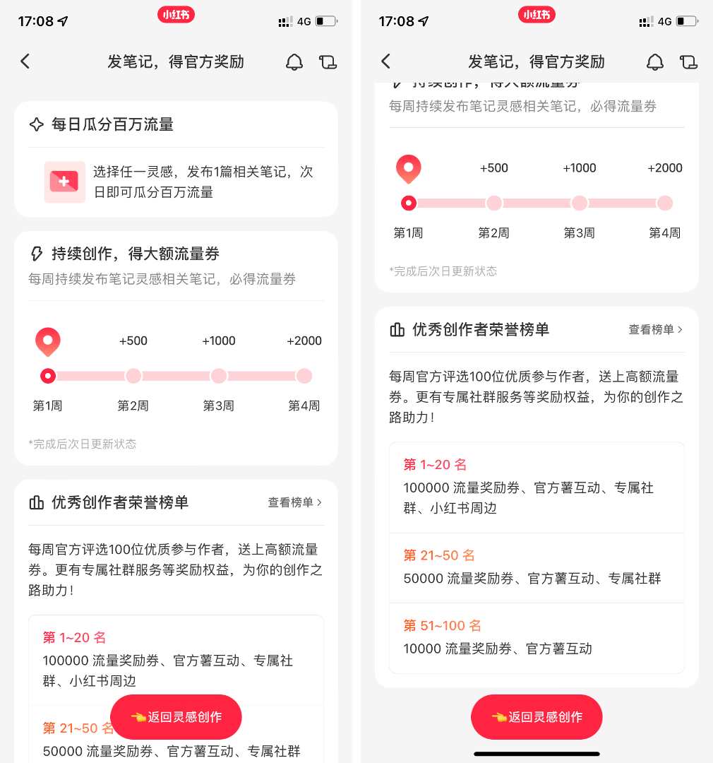 為了讓創(chuàng)作者發(fā)布繼續(xù)發(fā)布筆記,小紅書利用流量權益“誘惑”作者發(fā)布第二篇筆記,還給到了新手作者創(chuàng)作指南,大大降低了創(chuàng)作門檻。想要獲得流量助推,條件是 7 天內有 2 天發(fā)布筆記,收到這條消息的創(chuàng)作者都完成了首發(fā),那么只要再發(fā)一篇就能獲得流量,利益觸手可及。為了讓創(chuàng)作者持續(xù)創(chuàng)作不斷更,官方還舉辦了發(fā)布筆記瓜分百萬流量的活動,堅持每周發(fā)布筆記會有流量券獎勵。創(chuàng)作者在用掉流量券后,效果數據一目了然,無形中增強了獲得感。下次創(chuàng)作者為了得到流量券,就會再發(fā)布筆記。并且官方每周還會評選 100 個優(yōu)質的創(chuàng)作者,給他們送上更大額度的曝光獎勵。創(chuàng)作者的內容足夠優(yōu)質,那么拿到流量券后能獲得更多的點贊收藏,筆記能獲得越來越多的曝光,運氣足夠好進入創(chuàng)作榜前 100 的話,又能獲得大波流量,相當于像“滾雪球”一樣越滾越多。梯度流量券的激勵再加驚喜獎勵,讓創(chuàng)作者直呼“停不下來”。一般來說,平臺都會對新用戶有“特殊”照顧,讓他們更快成長。比如某內容平臺的潛規(guī)則是在用戶首次發(fā)布短視頻內容的 14 天內,對該用戶發(fā)布的所有視頻內容進行加權推薦,為了留住一些優(yōu)秀的內容創(chuàng)作者,官方甚至會用機器人和用戶互動;再比如滴滴快車司機的新人獎勵:完成 2 單獎勵 50 元,完成 5 單獎勵 100 元,為了讓他們更有動力在平臺產生訂單,感受到平臺的價值。3)推出保姆級“服務”,提升認同感
