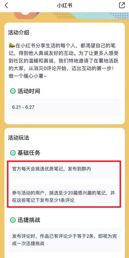 在創(chuàng)作者成長初期 ,平臺運營們一般會對創(chuàng)作者們額外用心,提供精細化服務,甚至還會親自下場去給創(chuàng)作者們的數據“加把火”。小紅書就曾經有這樣一個“騷操作”:在今年 6 月舉辦了一場“薯地有你,0 評再見”的活動,招募了一批用戶進群,讓用戶給官方挑選出的優(yōu)質筆記寫至少 1 條評論。完成任務的用戶可以獲得一定獎勵。看這活動是不是一舉兩得,既用獎勵調動起了用戶參與的積極性,又幫助優(yōu)質創(chuàng)作者提升了筆記的互動數據,讓創(chuàng)作者能夠快速獲得認同感。總的來說,新手期的創(chuàng)作者關鍵在于讓他們感受平臺的 Aha Moment,盡快地讓入駐的創(chuàng)作者們看到“回報”。03
