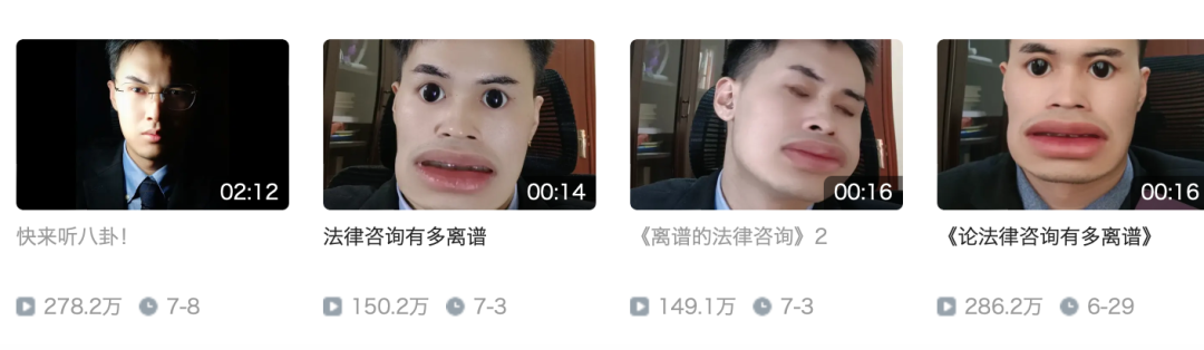 有人說(shuō)他是羅翔(千萬(wàn)法律UP主)的“開門弟子”;有人說(shuō)他是現(xiàn)實(shí)版張偉(愛(ài)情公寓里的“廢材律師”)。但真相卻是:這個(gè) 99 后的實(shí)習(xí)律師本想科普法律,結(jié)果卻在搞笑的路子上一去不返。不管怎樣,他那魔性的視頻,在這個(gè)夏天迅速攀上熱搜,成為了黑馬中的黑馬。