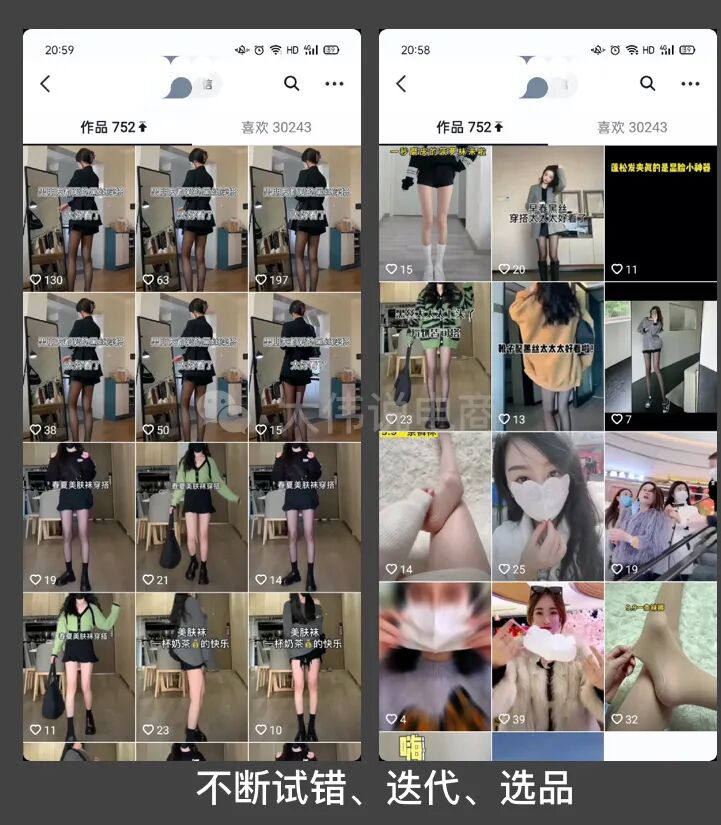 剛開始發(fā)的是女性的穿搭,但數(shù)據(jù)反饋并不好,就開始慢慢測(cè)流量,選品。