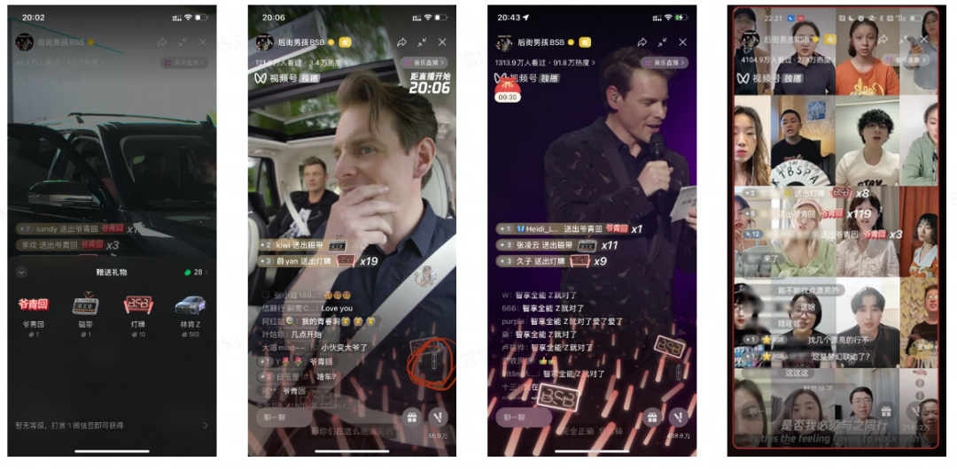 近來,我們觀察發(fā)現(xiàn),上述提到的品牌策劃營銷內容時可能出現(xiàn)的三大難點,「視頻號演唱會」這一內容形式在很大程度上給出了解法。【案例解析】羅大佑“童年”演唱會勾起全民回憶殺,崔健演唱會重溫搖滾情懷,可以看出,視頻號演唱會主角的共同特點是國民度高,有扎實的群眾基礎和出眾的口碑,幾乎每一場都直戳觀眾的內心深處,令人感觸良多。【案例解析】后街男孩演唱會首次在用戶進入直播間時增加了入場檢票儀式動效,票根撕開后演唱會現(xiàn)場呈現(xiàn)眼前,為用戶帶來滿滿的儀式感和現(xiàn)場感。首次推出品牌專屬定制 3D 動態(tài)大禮物,品牌車型疾馳駛入屏幕,酷炫動效融合產品動感外形,讓用戶在情緒表達中加深產品印象,增加品牌好感。【案例解析】央視《這young的夏天》2022夏日歌會舞臺背景為戶外草坪,很具氛圍感,配合上豎屏模式的高聚焦,給屏幕前的觀眾前排VIP專屬感。【案例解析】后街男孩演唱會中,除了演唱部分,還設計了許多與屏幕前的用戶互動的環(huán)節(jié),以彌補無法親臨現(xiàn)場的缺憾,基本上滿足了互動效果的幾個評價標準。 | 趣味性 | 挑戰(zhàn)性 | 參與感 |