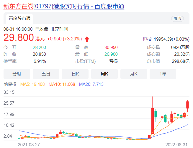 就在最近新東方在線的業(yè)績(jī)電話會(huì)議上,有消息披露東方甄選在過(guò)去三個(gè)月的GMV達(dá)到了20億左右。從利潤(rùn)率上來(lái)看,比單純做直播帶貨或者M(jìn)CN機(jī)構(gòu)還要高出不少。同時(shí),直播帶貨業(yè)務(wù)的火熱,也使得新東方在線的股價(jià)一飛沖天。據(jù)了解,從6月初到現(xiàn)在三個(gè)月的時(shí)間,新東方在線暴漲超過(guò)680%。