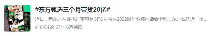 就在最近新東方在線的業(yè)績(jī)電話會(huì)議上,有消息披露東方甄選在過(guò)去三個(gè)月的GMV達(dá)到了20億左右。從利潤(rùn)率上來(lái)看,比單純做直播帶貨或者M(jìn)CN機(jī)構(gòu)還要高出不少。同時(shí),直播帶貨業(yè)務(wù)的火熱,也使得新東方在線的股價(jià)一飛沖天。據(jù)了解,從6月初到現(xiàn)在三個(gè)月的時(shí)間,新東方在線暴漲超過(guò)680%。除此之外,東方甄選自建獨(dú)立APP的消息也一度登上了微博熱搜,似乎預(yù)示著接下來(lái)還有更大的動(dòng)作。