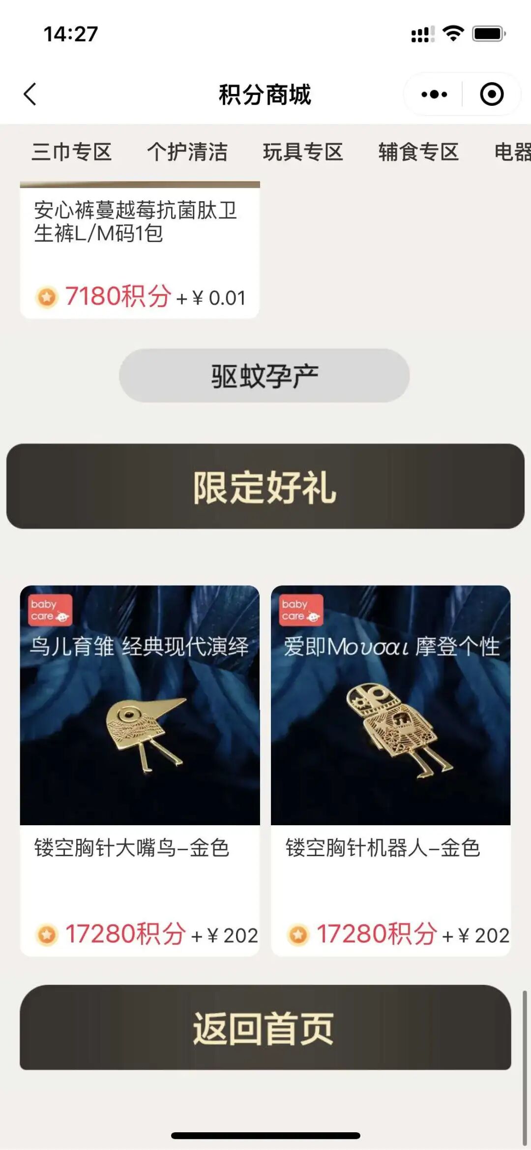 積分讓用戶有成就感,用戶能夠被積分驅(qū)動(dòng)且在這過(guò)程中感覺(jué)到了似乎可以占品牌便宜(特別是babycare作為母嬰頭部商家,客單價(jià)高于一般競(jìng)品,在用戶心中是“高顏值高品質(zhì)”的代表),因此看似是讓用戶薅羊毛,實(shí)則是平臺(tái)利用獲得感、成就感薅用戶的羊毛。