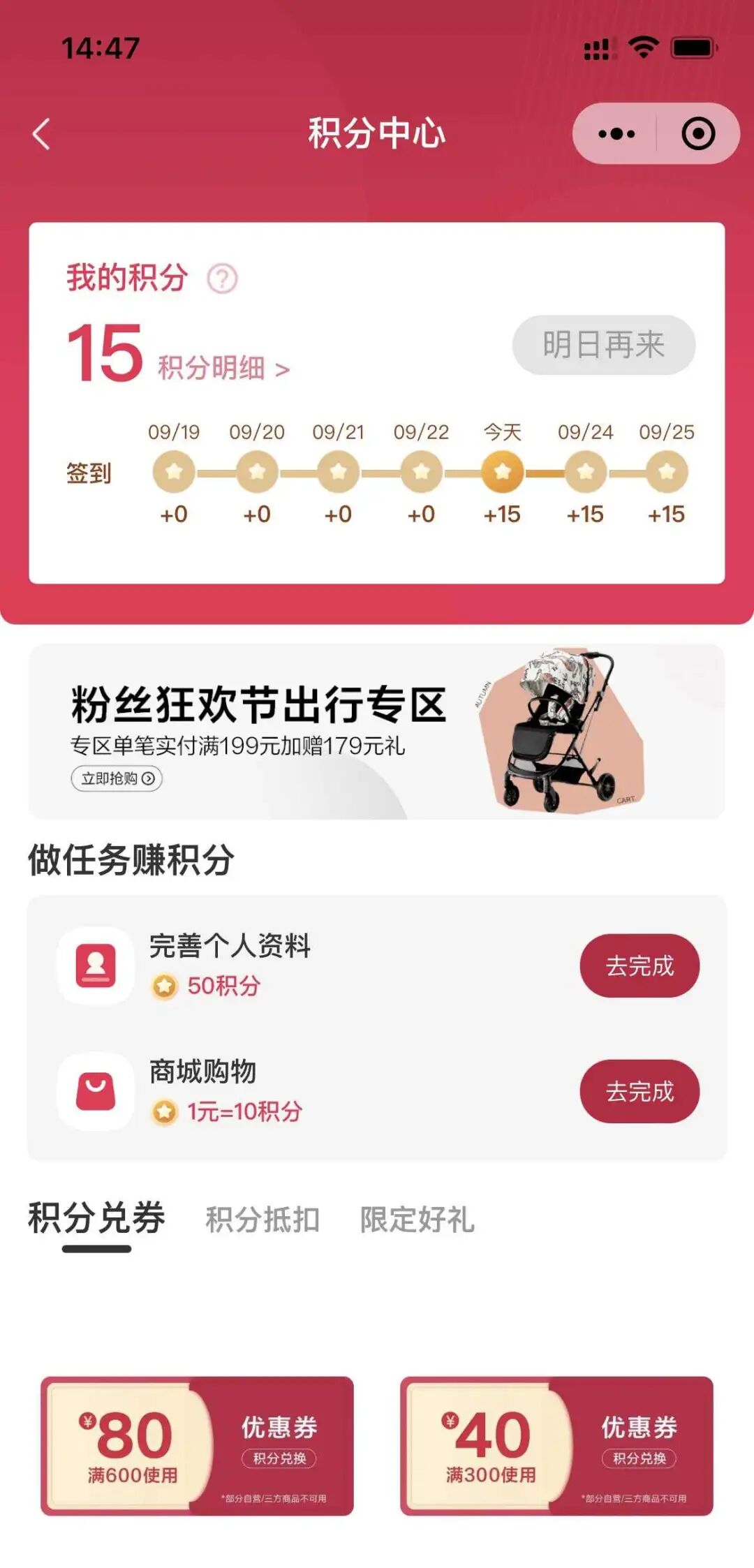 此外還有積分簽到頁(yè),隸屬于“積分中心”