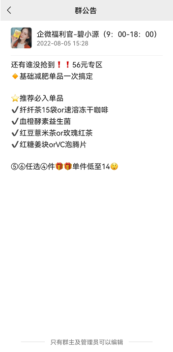 群公告:未定制群規(guī)范,主要以產(chǎn)品活動(dòng)內(nèi)容為主。