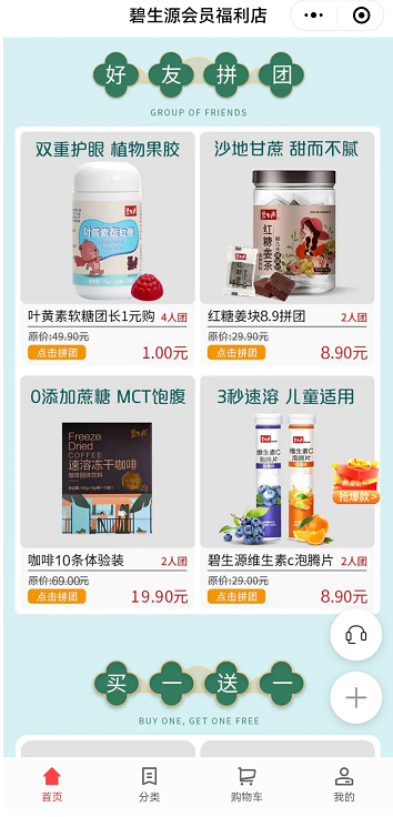 拼團(tuán):碧生源用低價(jià)格和最低拼團(tuán)人數(shù)來吸引用戶參與。
