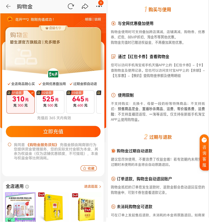 購物金使用時(shí)可支持疊加跨店滿減、店鋪滿減、購物券、優(yōu)惠券、紅包、88VIP折扣、淘金幣等其他優(yōu)惠。