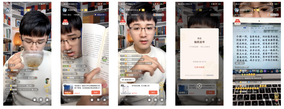 以達人賬號“趙健的讀書日記”為例,在一場圖書帶貨中,全程并沒有特別強調(diào)在直播間購買的性價比,而是突出圖書的內(nèi)容和價值觀對于自己的影響,訂單量卻不停飆升,儼然視頻號直播的“董宇輝”。