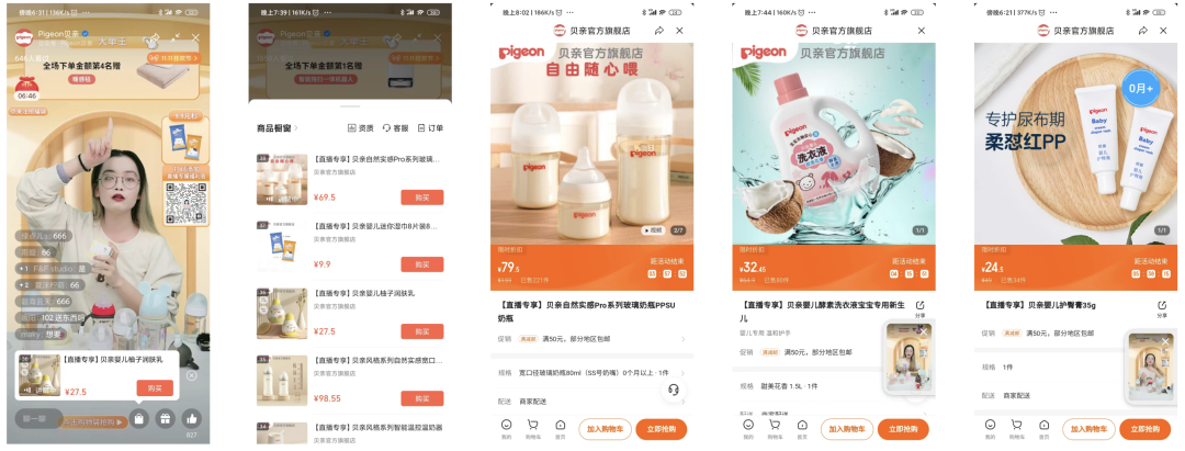 活動機制可以分為平臺機制和直播間機制。在平臺機制上玩的最花的,必屬淘寶直播,300-50的滿減券疊加店鋪券以及各類紅包,讓人眼花繚亂,看似一頓操作能白嫖不少折扣,但在我們拆解中發(fā)現(xiàn),例如貝親奶瓶、歌莉婭的羊毛呢外套等單品,淘寶渠道的最終價并不夠有吸引力。