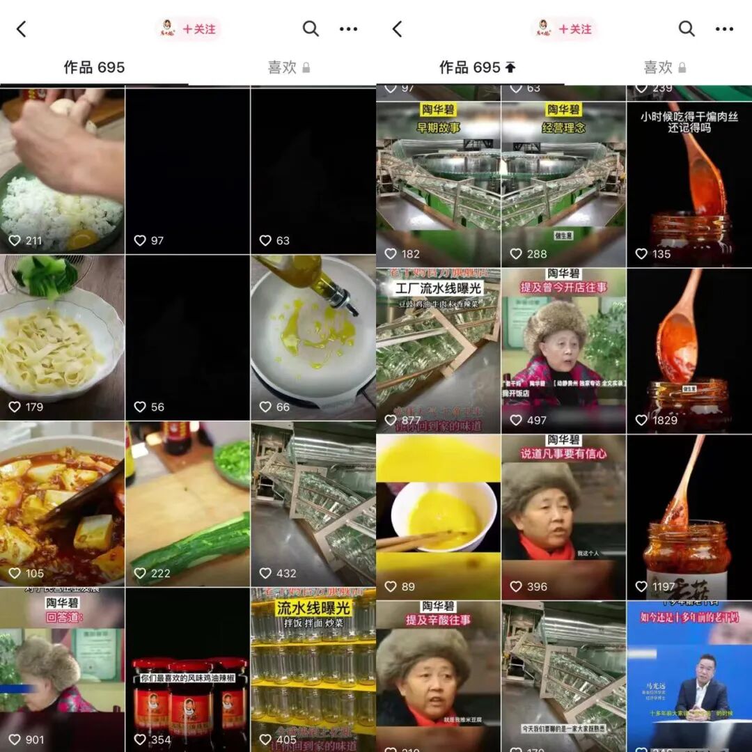 比如重復(fù)發(fā)布工廠生產(chǎn)老干媽玻璃瓶的視頻,老干媽創(chuàng)始人采訪的視頻,以及運(yùn)營(yíng)團(tuán)隊(duì)自己瞎拍的一些視頻等等。