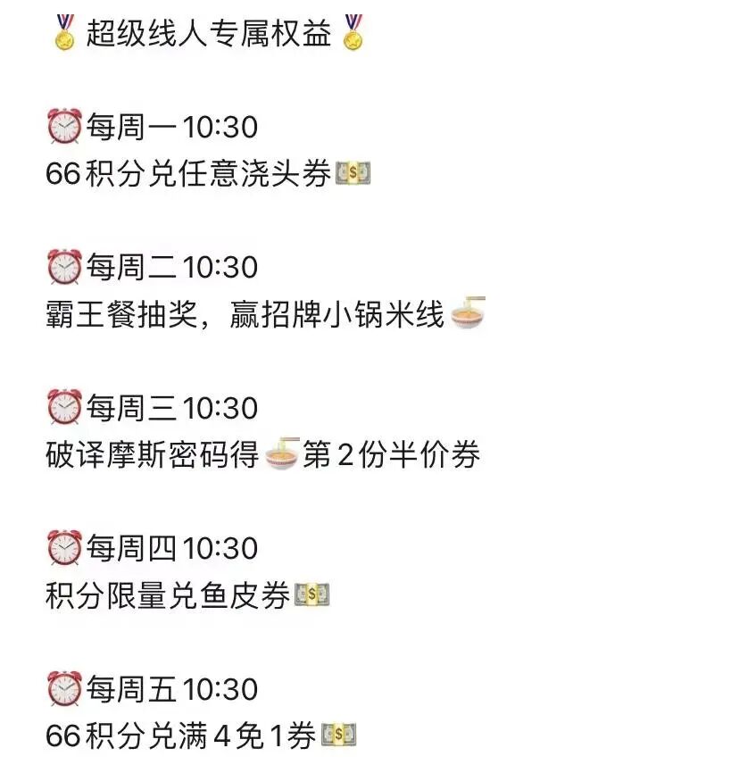 除此之外,“超級用戶”還能享受到一些普通用戶接觸不到的權(quán)益。比如周一、周五可以用積分兌換優(yōu)惠券,周三可以參加小游戲贏優(yōu)惠券。