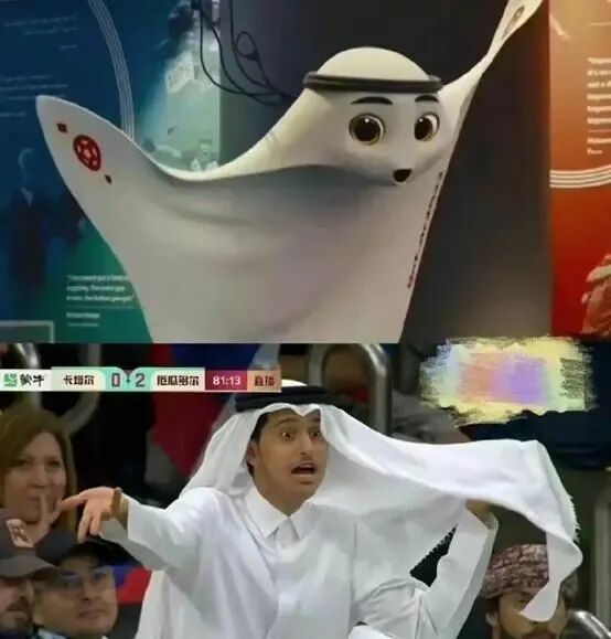 視頻中,拉伊卜小王子的臉型和它長得特別像,或許就是按照他的臉型制作成卡通形象吧。尤其是他在看比賽時的動作形象,特別像。