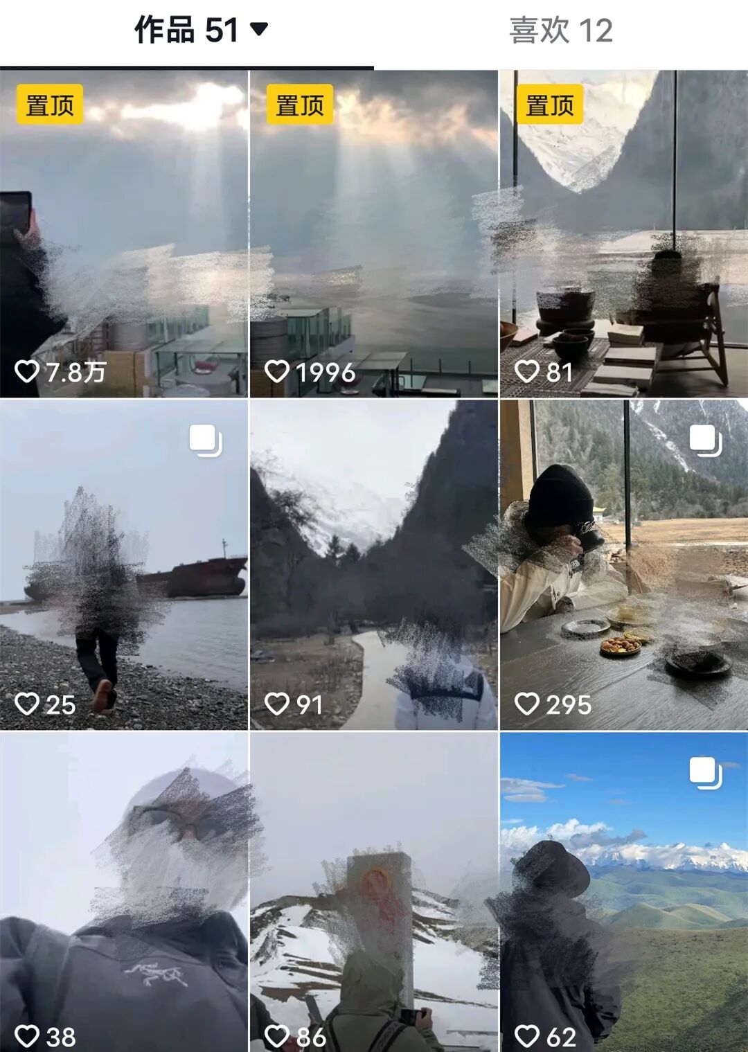 其余有的是記錄旅行過(guò)程,有的是分享航拍畫面,拍攝地點(diǎn)都是國(guó)內(nèi)網(wǎng)紅旅行地,最容易出片及爆火的地點(diǎn),四川,例如迪慶雨崩、甘孜、延邊長(zhǎng)白山、318川藏線、大理洱海等。
