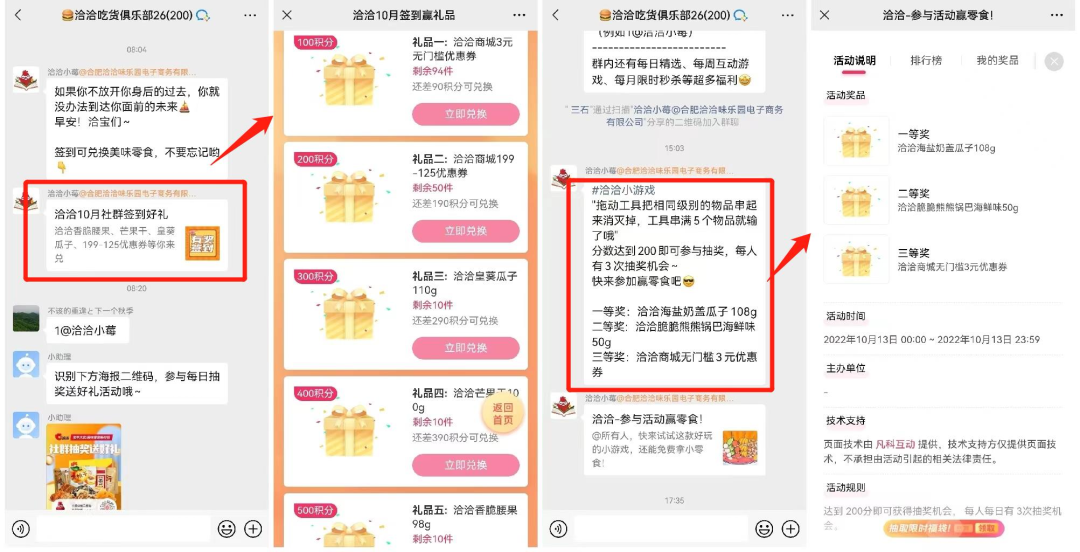 1、互動游戲:洽洽的社群互動游戲有一定門檻,獲得200分才能進(jìn)行抽獎,而且抽獎概率比較低,用戶體驗(yàn)不佳。