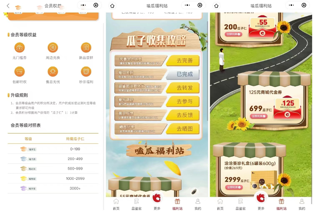 積分被稱為“瓜子仁”,通過完成指定任務(wù)可以獲得大量“瓜子仁”,用于等級成長、優(yōu)惠換購及產(chǎn)品兌換。