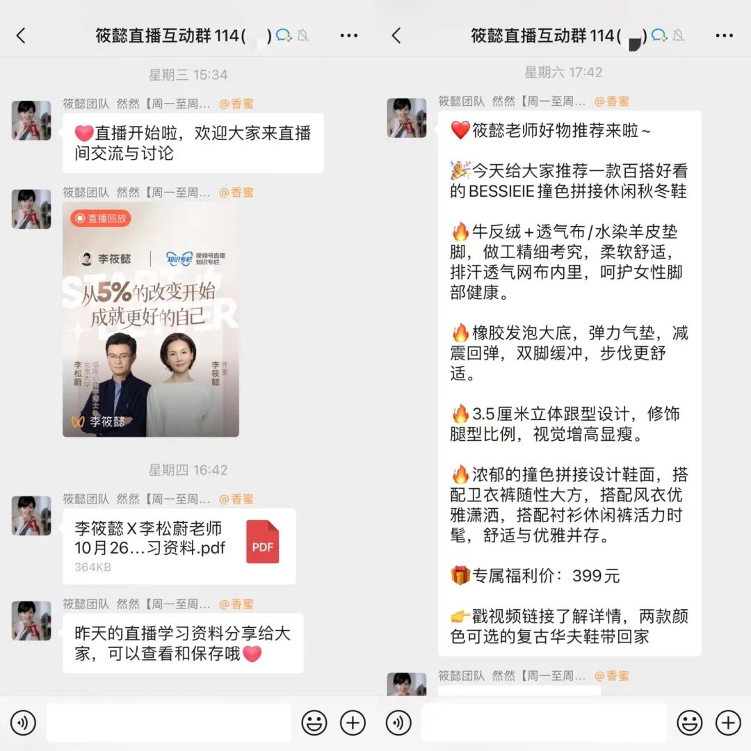 在直播期間,也可以分前中后等不同階段,喚醒社群用戶,做好提醒,告知開播、熱銷產(chǎn)品、爆品反場等。讓社群保持一定的粘性與活躍度,對于直播間的復(fù)購轉(zhuǎn)化都有極大的幫助。