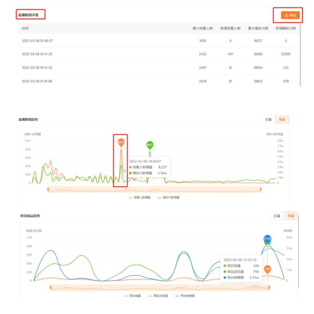 利用【友望數(shù)據(jù)】直播監(jiān)控,查看直播數(shù)據(jù)趨勢,可以看到直播數(shù)據(jù)趨勢、帶貨商品趨勢、直播數(shù)據(jù)詳情等,而后分析影響各環(huán)節(jié)的因素,對照直播回顧,查缺補漏,為下一次直播做好準備。