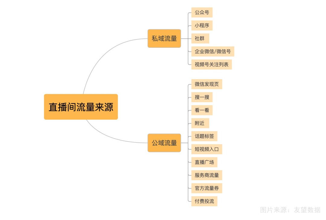 視頻號直播的流量主要分私域流量和公域流量,私域流量主要通過預約以及在朋友圈、社群、企微1對1私聊等渠道進入直播間,可以關注的數(shù)據(jù)是推廣覆蓋量及直播預約人數(shù)。