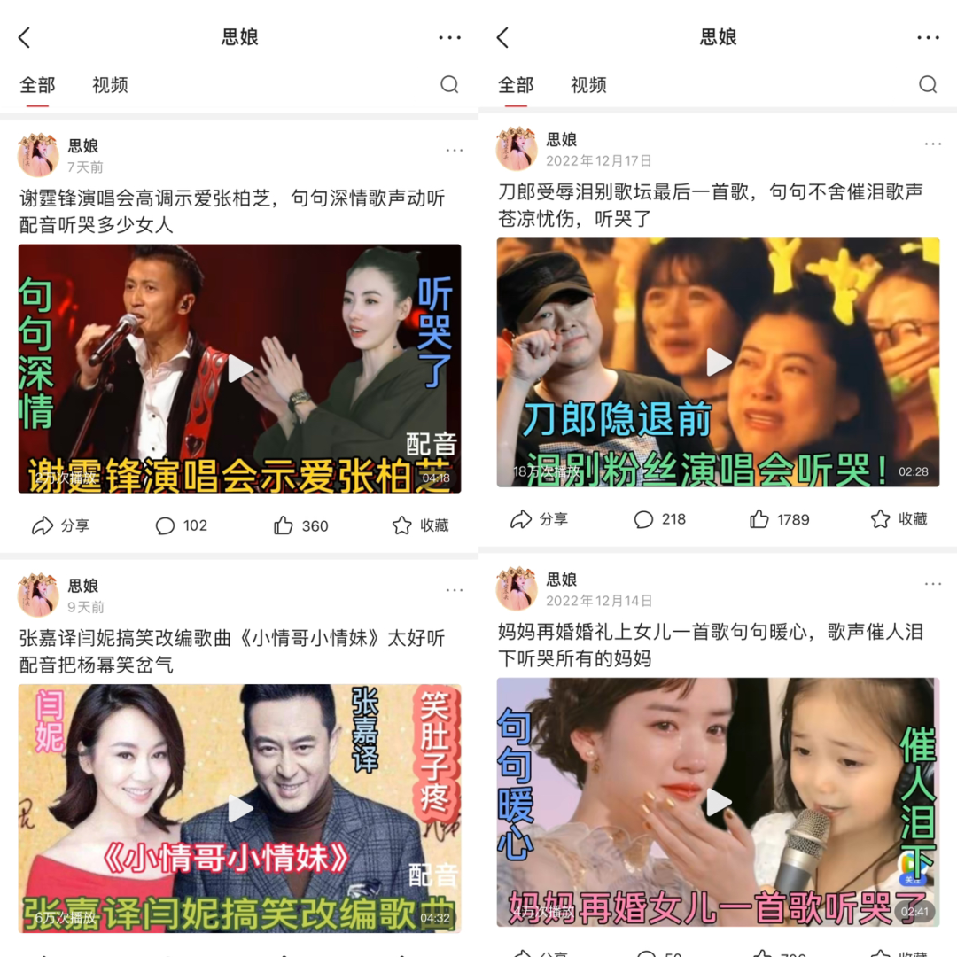 第一個(gè)案例就是做視頻和音頻混剪的,找一些熱門影視、綜藝相關(guān)的視頻,然后再找一些土味的音樂,把兩者之間混在一起。