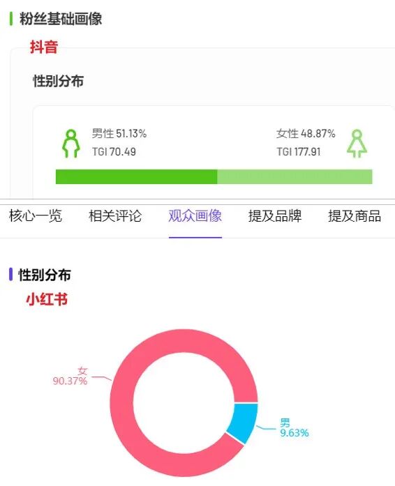 運(yùn)營社觀察貓一杯在抖音、小紅書、B站的內(nèi)容后發(fā)現(xiàn),貓一杯其實(shí)會根據(jù)不同平臺的特點(diǎn)調(diào)整細(xì)節(jié),并不只是簡單的“一鍵分發(fā)”。比如說,貓一杯的抖音視頻封面就是截取了視頻中的一個(gè)畫面,只露出了臉和字幕;但是貓一杯會專門為小紅書和 B站再制作一版視頻封面,不僅有夸張表情的露出,還配有一些跟主題相關(guān)的關(guān)鍵詞。做出這些調(diào)整,運(yùn)營社猜測:抖音的呈現(xiàn)形式是單列信息流,強(qiáng)調(diào)“ 3 秒內(nèi)抓人眼球”,視頻封面相對不那么重要;而小紅書和 B站是雙列信息流呈現(xiàn),封面直接決定了點(diǎn)擊率,所以要在封面中展現(xiàn)出關(guān)鍵信息。再比如,雖然 3 個(gè)平臺上發(fā)布的內(nèi)容大致相同,但貓一杯會針對某個(gè)平臺專門制作一些內(nèi)容。像在小紅書上,貓一杯偶爾會發(fā)布一些圖文,要么是曬曬美照,要么是分享飾品和服飾,為自己的品牌店鋪引流。但這些內(nèi)容并沒有放在抖音和 B站上發(fā)布。運(yùn)營社猜測,一來是因?yàn)樵谛〖t書更適合發(fā)布圖文種草類內(nèi)容;二來是因?yàn)楦髌脚_的觀眾畫像不同,因此偏好也不同。飛瓜數(shù)據(jù)統(tǒng)計(jì),貓一杯抖音視頻的觀眾中男女比例基本持平;而小紅書筆記的觀眾中,有 80-90% 都是女性(數(shù)據(jù)來源于千瓜數(shù)據(jù))。那在小紅書上做穿搭的種草引流,效果自然會更好;如果發(fā)在抖音和 B站上,可能會“適得其反”。
