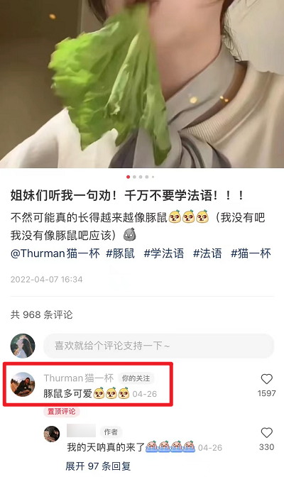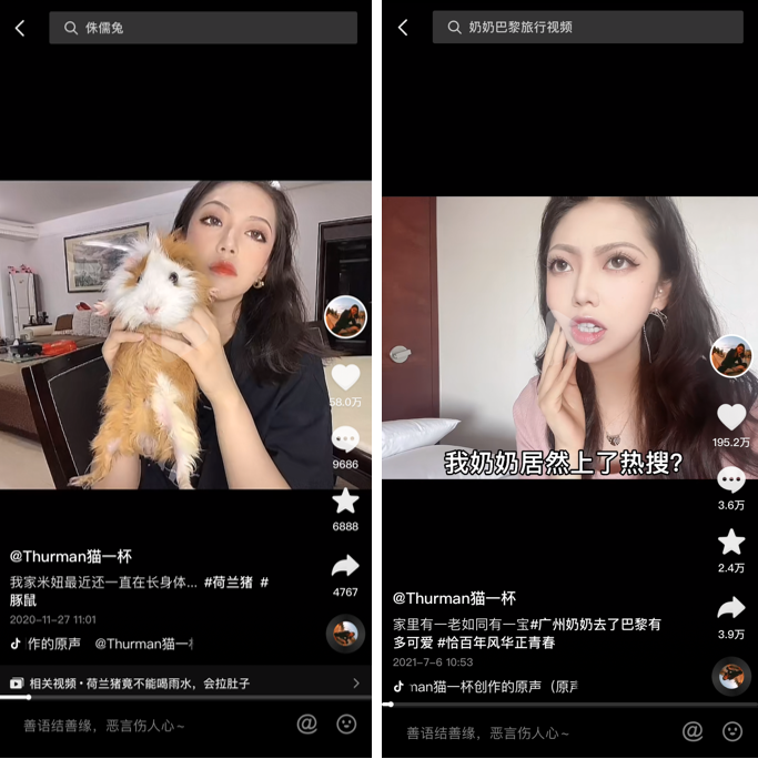 就是行為和形象之間存在的強(qiáng)烈反差感,讓貓一杯圈粉無數(shù),且粉絲粘性極強(qiáng)。有許多粉絲給貓一杯取了叫“豚鼠”的昵稱(因?yàn)槟7码嗍竽7碌锰瘢?/span>,還創(chuàng)造出了一個(gè)獨(dú)特的梗“拒絕(貓一杯的)動物表演”。更有意思的是,還有不少 B站粉絲專門圍繞貓一杯制作了視頻:給貓一杯組 cp 、說看到豚鼠時(shí)就想到貓一杯、分析她的豚鼠系長相......當(dāng)粉絲們總是拿“像豚鼠”開玩笑,貓一杯也選擇主動接梗。想必粉絲們喜歡她,很大程度上也是因?yàn)樽銐颉敖拥貧狻薄?/span>4)根據(jù)平臺特性,適當(dāng)調(diào)整內(nèi)容