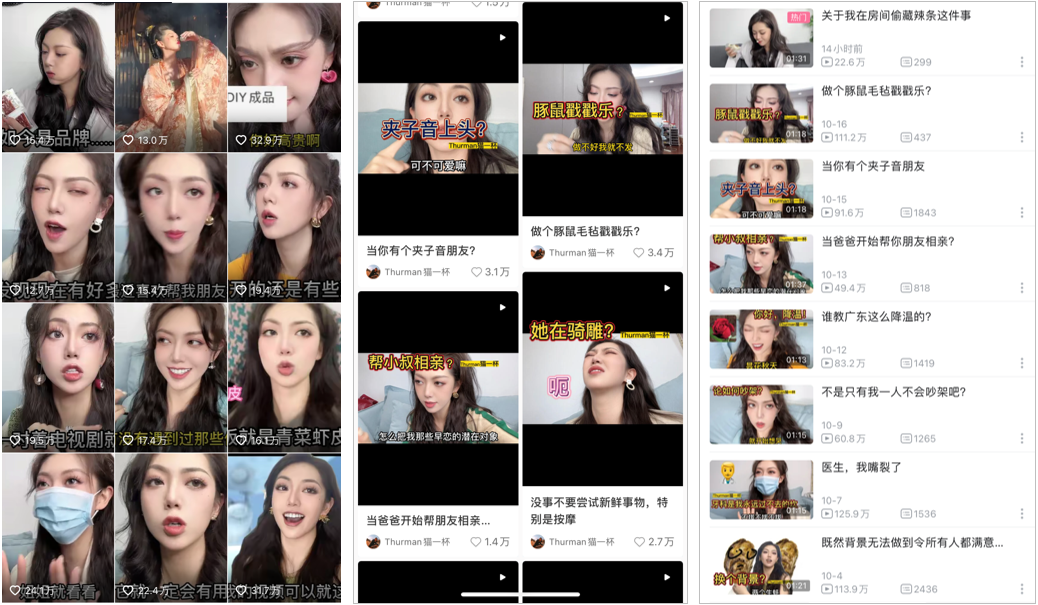 來源 |運(yùn)營研究社(ID: U_quan)能有人在抖音、小紅書、B站這三個(gè)平臺都爆火嘛?一個(gè)名叫@Thurman貓一杯(以下簡稱為“貓一杯”)的創(chuàng)作者做到了。貓一杯是一個(gè)年輕女生,在抖音、小紅書、B站分別有 1331w、401w、240w 粉絲,自帶有“到哪兒火哪兒”的特質(zhì)。貓一杯有多“神奇”?她創(chuàng)作的內(nèi)容為什么能放之四海而皆“火”?此次,運(yùn)營社就帶大家扒一扒貓一杯爆火背后,到底藏著哪些“流量密碼”。貓一杯并不是新晉網(wǎng)紅,說起來也“出道”已久。根據(jù)現(xiàn)有信息顯示,貓一杯于 2020 年 4 月就開始更新抖音,總是用搞笑的方式分享自己生活中的所聞所見。目前已積累了 1331w 抖音粉絲,視頻點(diǎn)贊量在 20w 左右,時(shí)不時(shí)也會出一個(gè)百萬贊的爆款。如果說她在抖音上只是“小火”,那么到了小紅書和 B站可以說是真正的“爆火”。2021 年 1 月,貓一杯開始將內(nèi)容同步更新至小紅書,第一條視頻就獲得了 16w 點(diǎn)贊,一炮而紅。之后的視頻獲得 5w+ 點(diǎn)贊是“基本操作”,有些甚至都會達(dá)到 20w+ 。這是什么概念?要知道,小紅書筆記能達(dá)到 1w 點(diǎn)贊就算是“大爆文”,有 100w+ 粉絲已經(jīng)算是頭部博主。當(dāng)下最火熱的網(wǎng)紅之一@易夢玲 也就有 380w+ 小紅書粉絲。貓一杯的數(shù)據(jù),甚至超過了一部分明星。2021 年 6 月,貓一杯又入駐了 B站。B站是貓一杯的另一個(gè)內(nèi)容分發(fā)渠道,但僅僅是做個(gè)“分發(fā)”,貓一杯就又漲粉了 240w,視頻的播放量輕松破百萬。不僅是個(gè)“爆款輸出機(jī)”,貓一杯的商業(yè)變現(xiàn)能力也堪稱“彪悍”。千瓜數(shù)據(jù)顯示,貓一杯在小紅書的商單報(bào)價(jià)則是 5w/篇,在過去一個(gè)月(2022.9.19-10.18)共發(fā)布了 7 篇商業(yè)筆記。就光是靠小紅書,貓一杯大概在 1 個(gè)月里就獲得了 35w 的廣告收入。更神奇的是,貓一杯真正的主業(yè)是一位時(shí)尚設(shè)計(jì)師,還創(chuàng)建了自己的品牌,開設(shè)了自己的工作室。“做自媒體”,似乎只是人家工作中的一部分。光是做個(gè)“副業(yè)”,就做到了漲粉幾百萬......貓一杯創(chuàng)作出了什么樣的內(nèi)容,能夠在三個(gè)平臺接連走紅?從外形條件來看,貓一杯完全可以走顏值類博主的路線。白皮膚大眼睛瓜子臉,貓一杯絕對是妥妥的美女,但人家偏偏“不靠臉靠才華”。感受一下這顏值