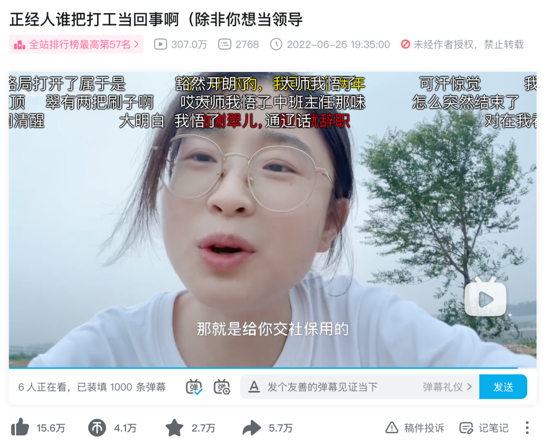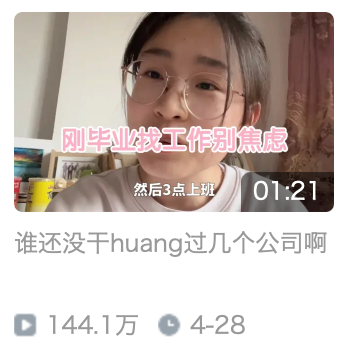 。在一開(kāi)始,侯翠翠就憑借反內(nèi)卷的人設(shè) + 戲劇性的開(kāi)頭牢牢抓住了用戶的目光。最近幾年,內(nèi)卷、內(nèi)耗等詞越來(lái)越火,大學(xué)畢業(yè)遇到行業(yè)“寒冬”,考研三年考上 985、211 后,好不容易找到工作卻可能面臨 996、007 等工作壓力……“內(nèi)卷、內(nèi)耗”之下,“躺平、下崗、回鄉(xiāng)”等詞又應(yīng)運(yùn)而火。非 985/211 畢業(yè)的侯翠翠,做了 5 年互聯(lián)網(wǎng)打工人以后,一朝被裁,在家待業(yè),心安理得地領(lǐng)著 1700 塊的失業(yè)金,然后做起自媒體。對(duì)在大城市工作,想躺卻躺不下的年輕人來(lái)說(shuō),侯翠翠是他們的 B面,是他們夢(mèng)想的生活。運(yùn)營(yíng)社發(fā)現(xiàn),侯翠翠這種「反內(nèi)卷」的風(fēng)格在她的視頻標(biāo)題中體現(xiàn)的淋漓盡致:行業(yè)遇到“寒冬”,公司人心惶惶時(shí),侯翠翠的視頻標(biāo)題是《誰(shuí)還沒(méi)干 huang 過(guò)幾個(gè)公司啊》。職場(chǎng) PUA 上熱搜,不少用戶反映自己深受其苦時(shí),侯翠翠的視頻標(biāo)題是《老板說(shuō)我不行?我不信》、《正經(jīng)人誰(shuí)把打工當(dāng)回事兒啊(除非你想當(dāng)領(lǐng)導(dǎo))》。大家一邊為自己是「剩男剩女」感到焦慮,一邊又“恐婚恐育”時(shí),侯翠翠的視頻標(biāo)題是《老好奇別人沒(méi)對(duì)象,怎么你也沒(méi)對(duì)象啊》。想要吃“反內(nèi)卷”這口飯,光有躺平的人設(shè)和富有爽點(diǎn)的標(biāo)題是不夠的。侯翠翠能夠爆火出圈,最重要的原因在于,她看似平常的嘮嗑視頻里,藏著話題性超強(qiáng)的內(nèi)容——勁爆的選題和節(jié)奏超快的包袱。拿侯翠翠早期出圈視頻《正經(jīng)人誰(shuí)把打工當(dāng)回事兒啊》舉例,這個(gè)視頻主題是幫助打工人緩解職場(chǎng)焦慮,視頻全長(zhǎng)只有 90 秒,卻金句云集,平均每 18 秒就有一個(gè)金句。①公司要是真的那么優(yōu)秀,他能輪到我去面試嗎?這那么了不起,還能輪到我入職嗎?