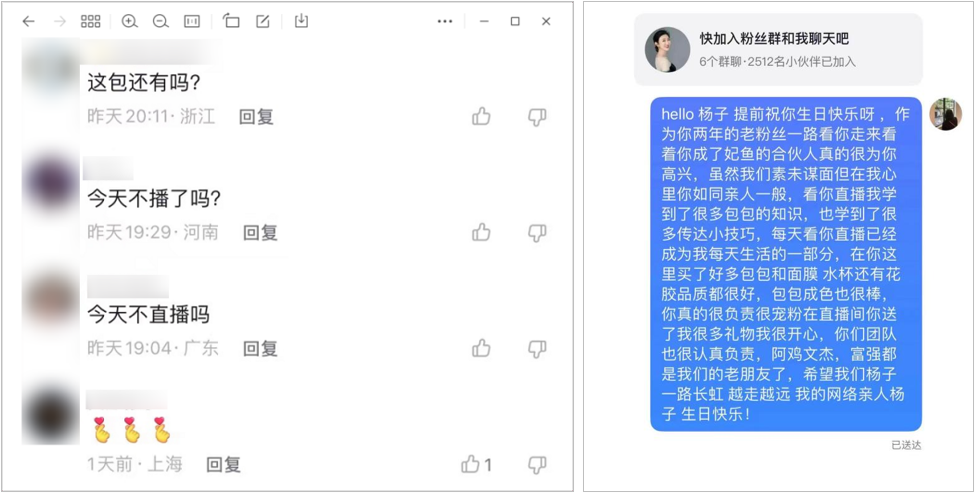 哪怕是在直播間外,也有其他工作人員為直播間“戰(zhàn)斗”著。負(fù)責(zé)人小鳳最害怕出現(xiàn)的突發(fā)情況,就是網(wǎng)絡(luò)突然中斷。斷網(wǎng)對于直播間的打擊是極具“毀滅性”的——但凡停播 5 分鐘,好不容易積攢的人氣就會全部歸零,正在交易的訂單也只好被迫關(guān)閉。所以,公司的技術(shù)相關(guān)人員必須陪跑整個直播過程。萬一出現(xiàn)網(wǎng)絡(luò)問題,技術(shù)人員就是“急救員”,力求在 1 分鐘之內(nèi)就讓直播間恢復(fù)正常。除此之外,還有一批人——投流工作人員,是直播間的“流量護(hù)衛(wèi)”。他們最主要的任務(wù),是根據(jù)直播間的實時流量數(shù)據(jù),對投流策略進(jìn)行調(diào)整,讓直播間被更多人看到。運營、場控、客服、技術(shù)、投流、空間設(shè)計師......這些工作人員站在觀眾看不到的地方,配合主播一起撐起了直播間。今年抖音雙11,小鳳有個新的想法,“我想讓大家看到我們更多的幕后工作者”。她決定讓合作的外部商家和整個團(tuán)隊都出現(xiàn)在直播間和觀眾打招呼,分享直播背后的故事。等到凌晨,直播結(jié)束后,大家的工作也進(jìn)入了收尾階段,剩下最后一個小任務(wù)——做個簡單的復(fù)盤。楊子在直播中會細(xì)致地觀察到一些用戶的反饋——比如吐槽哪個包價格太高、款式太老,她默默記在心里,復(fù)盤時將信息同步給團(tuán)隊人員,督促大家下次直播時做出改進(jìn)。上述這些,只是一場日常直播的工作流程。而這樣的“仗”,幾乎每天都要在直播間上演。目前,楊子直播間的場觀穩(wěn)定在十幾萬,每天的銷售額能有幾百萬,成為了公司的頭部直播間。做到現(xiàn)在的成績,楊子直播間花費了 1 年多時間,達(dá)成如今的成績,團(tuán)隊為此付出了難以想象的汗水和打拼。楊子曾是一名有 10 年工作經(jīng)驗的空姐,會轉(zhuǎn)行做主播,說起來也是機(jī)緣巧合。2020 年初,受到疫情影響,國內(nèi)外許多航班都無法起飛,楊子的工作被迫“按下了暫停鍵”。這段時間里,楊子重新思考了未來職業(yè)發(fā)展規(guī)劃,意識到自己的身體可能也跟不上長時間的飛行。考慮了各方面因素后,再加上自身對時尚品牌比較了解,楊子選擇入職妃魚,踏上了主播路。作為一個新人,在正式上播前需要經(jīng)過公司的一系列培訓(xùn),包括惡補(bǔ)關(guān)于奢侈品的專業(yè)知識等等。公司還會針對主播的個人情況做些個性化培訓(xùn),比如一些主播是時尚管理專業(yè)出身、對奢侈品如數(shù)家珍,但缺乏直播經(jīng)驗,就要著重補(bǔ)習(xí)直播技巧。楊子學(xué)習(xí)了幾個月后,便被安排到了妃魚旗下的某一個直播間,做其中一個主播(直播間共有幾位主播,每天輪流上播)。慢慢地,楊子的帶貨成績有了起色,每個月可以做到幾十萬的銷售額,觀眾們也熟悉了這個開朗活潑的女生。公司注意到了楊子的發(fā)展?jié)摿Γ?/span>于是在 2021 年 5 月左右專門為她開設(shè)了新賬號——現(xiàn)在的@妃魚時尚合伙人楊子。這是楊子直播生涯中一個重要的節(jié)點,有了屬于自己的直播間。同時,負(fù)責(zé)人小鳳加入了楊子團(tuán)隊,正式接手孵化楊子賬號。但隨著好消息來的,還有團(tuán)隊即將面臨的挑戰(zhàn)——新賬號,意味著一切都要從 0 開始。小鳳回憶起當(dāng)時的情景說道:“那時候幾乎沒有休息時間......為了快速起號,我們前一天晚上直播完,第二天下午就來公司繼續(xù)選貨品、對流程、做復(fù)盤,晚上又要接著直播?!?/strong>富強(qiáng)補(bǔ)充了一點:“別看楊子直播時總是笑嘻嘻的,其實她本人對待工作相當(dāng)認(rèn)真,對我們的要求也很嚴(yán)格?!?/span>舉個例子,楊子會給團(tuán)隊的小伙伴們下達(dá)一個任務(wù),空閑時去高端的奢侈品店或酒店,感受真正的“高奢服務(wù)”,然后將自己的所學(xué)所得運用在平時工作里,爭取給直播間觀眾也提供類似的“高奢服務(wù)”。從早忙到晚,腦子里只有一個信念在支撐著自己——把每一場直播都做好,做得漂亮。過了段時間,號一步步做了起來,流水逐步升高,從 0 邁向了 1 ,大家這才松了口氣,工作也稍微輕松一些了......但沒多久,更大的挑戰(zhàn)來了。隨著楊子直播間的人氣上升、體量越來越大,粉絲們的訴求也越來越多,大家要花更多的時間和力氣去對接商家尋貨。與此同時,團(tuán)隊的人手告急,必須馬上招聘新的小伙伴、培養(yǎng)新人,又是一波工作壓力。2021 年 9 月,楊子團(tuán)隊終于迎來了一次巔峰?!拔覀冇幸淮沃辈ィ珿MV 是當(dāng)日全公司最高,我記得在線人數(shù)最高有 1 萬人,那個月賣了 2000 多萬!”小鳳在談到那個月的“戰(zhàn)績”時,聲音里不掩激動。如此出色的成績就像一針“強(qiáng)心劑”?!按蠹译m然已經(jīng)很疲憊,但心里有滿滿的成就感,努力都沒有白費?!?000 多萬的月銷售額是楊子直播間具有紀(jì)念意義的里程碑,至此楊子團(tuán)隊完成了“從 1 到 100 ”的飛躍。而團(tuán)隊當(dāng)時無法預(yù)想的是,這個成績只是個開始。今年抖音雙11好物節(jié),楊子首場銷售成績已達(dá)到近 400 萬。運營社作為經(jīng)常蹲守在直播間的網(wǎng)購愛好者,發(fā)現(xiàn)了一些小細(xì)節(jié)。在直播間“從 0 到 100 ”的過程中,或許團(tuán)隊要面對的,不光光是身體上的疲憊。比如主播要接