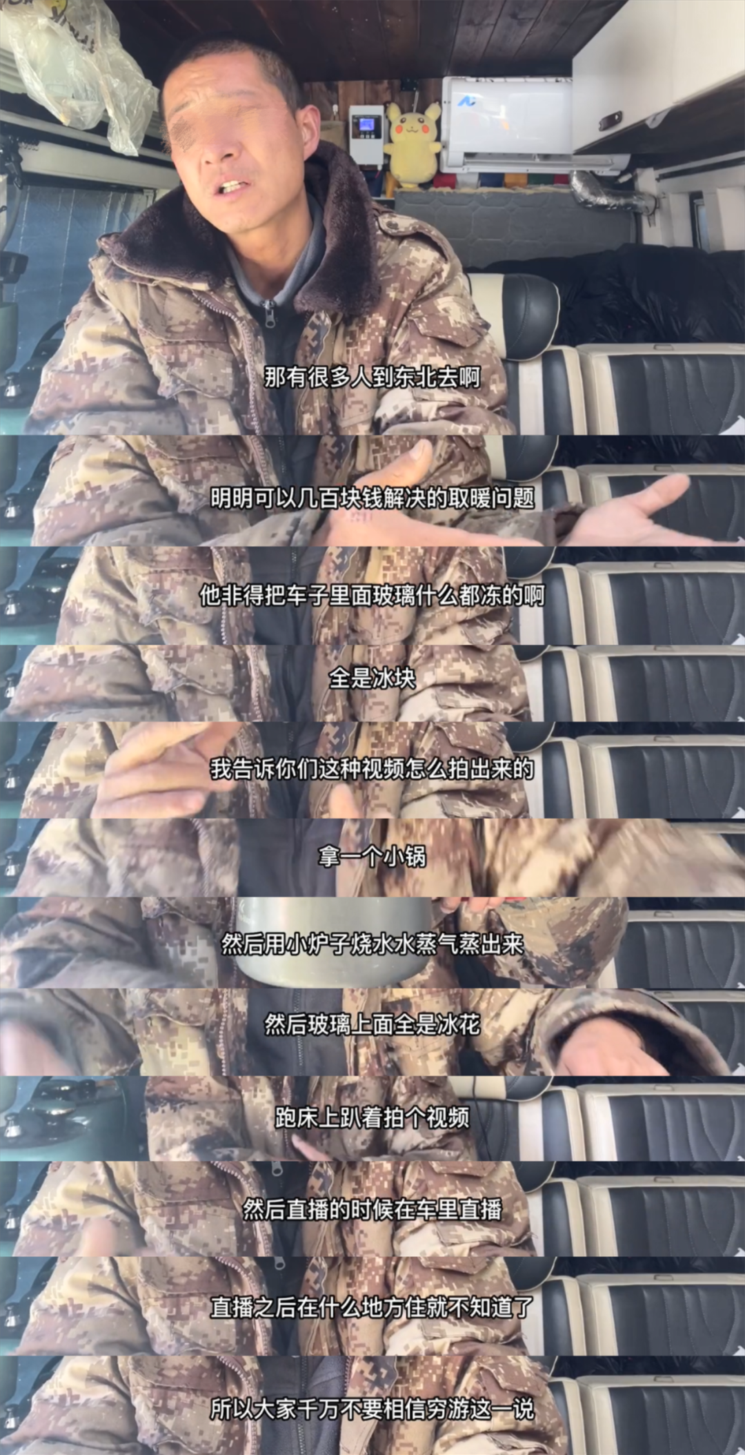除了發(fā)布旅游見聞,他還怒懟過一些其他旅行博主假窮游,比如冬季旅游明明花很少的錢就能夠讓車?yán)镒兊锰貏e暖和,非要說特別冷,博取大家同情賺取流量,這類視頻也有很多人看。