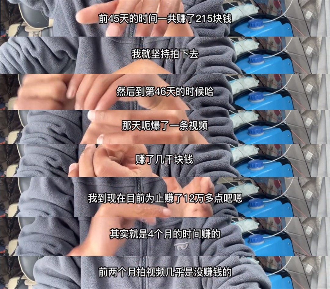 但他最高的一條視頻播放量達(dá)到700多萬,這放在其他新媒體平臺(tái)其實(shí)是非常難實(shí)現(xiàn)的,最關(guān)鍵的是這條視頻收益有4500元。