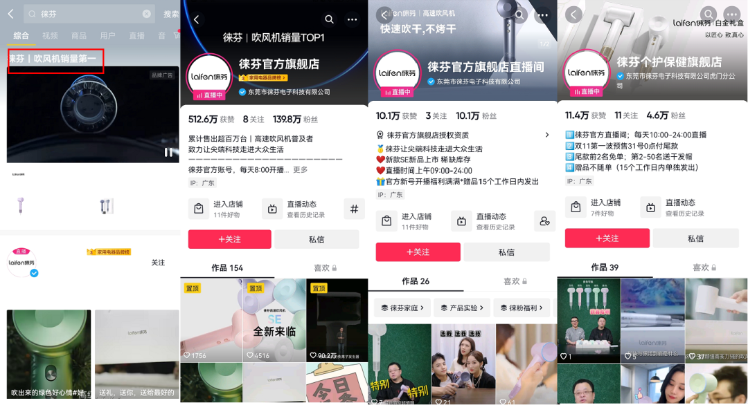2021年12月,剛成立兩年的徠芬銷售額僅700萬元,而今年9月份銷售額已逼近10億元。今年618期間全網(wǎng)銷售額更是達到1.67億,“霸榜”各大主流電商平臺吹風機品類的TOP1。