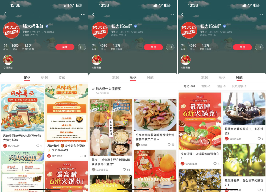 錢大媽在小紅書粉絲數有4950,獲贊與收藏1.3萬。話題#錢大媽什么值得買 有4.8萬瀏覽量,賬號主要內容為產品介紹、品牌宣傳等內容。