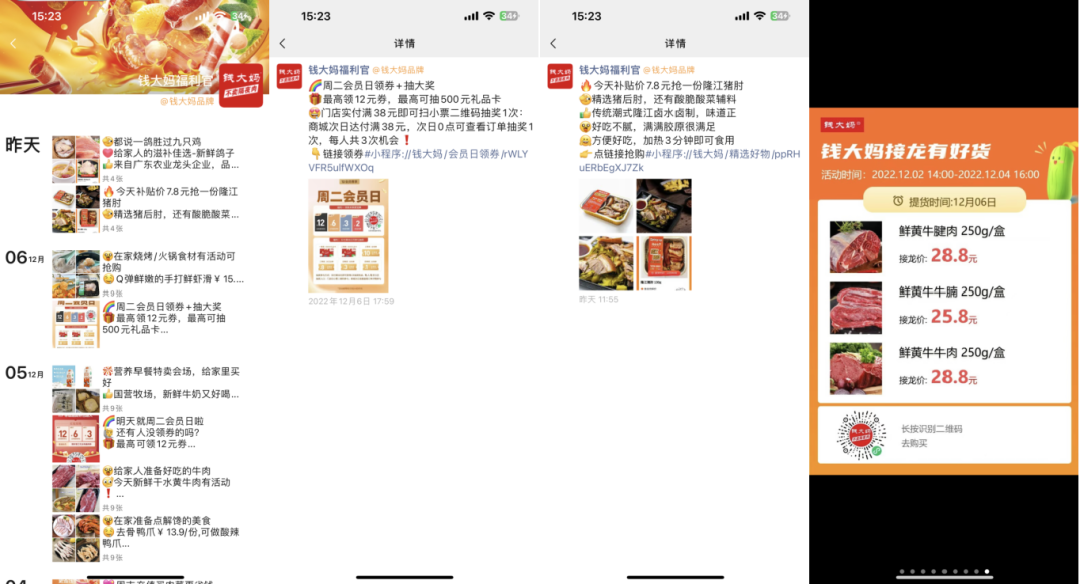 早在2018年,錢大媽就開通微信小程序店鋪,打開社交電商渠道,之后開始建立私域社群,不斷吸納會員。