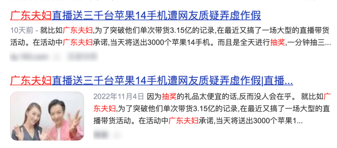 因此,不少網(wǎng)友認(rèn)為,廣東夫婦“帶貨頂流”之名,頗有水分。并且,流量越大,爭(zhēng)議越多,直播結(jié)束沒(méi)有多久,廣東夫婦疑似“在抽獎(jiǎng)中弄虛作假”的消息就擴(kuò)散開來(lái)。