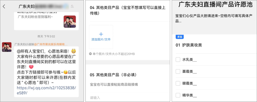 小迷妹會(huì)定期向用戶推送「心愿池」,用戶有什么想要的心愿品可以點(diǎn)擊進(jìn)入許愿,其范圍以護(hù)膚美妝類為主,覆蓋水乳、面霜、眼霜、精華等 9 個(gè)細(xì)分品類,用戶甚至還以上傳自己想要的產(chǎn)品圖片或者產(chǎn)品鏈接。