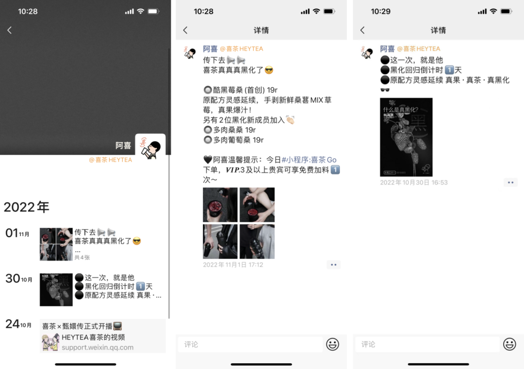 3)朋友圈缺乏運(yùn)營:喜茶企微的朋友圈內(nèi)容較少,基本沒有維護(hù)和更新,流失了與用戶直接交流的渠道。