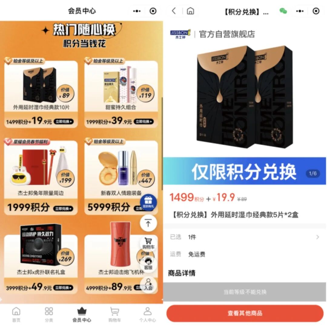 杰士邦的會(huì)員體系主要在【杰士邦小程序旗艦店】中承載。