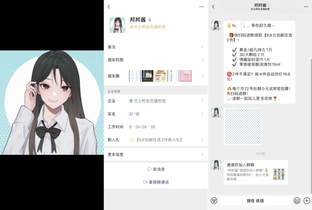 杰士邦線上借助“企業(yè)微信+公眾號(hào)+視頻號(hào)+小程序+社群+直播”等應(yīng)用工具,并依靠微博、小紅書(shū)、抖音、B站等熱門(mén)平臺(tái)渠道,將平臺(tái)的公域流量逐步導(dǎo)入到自身的私域流量池。