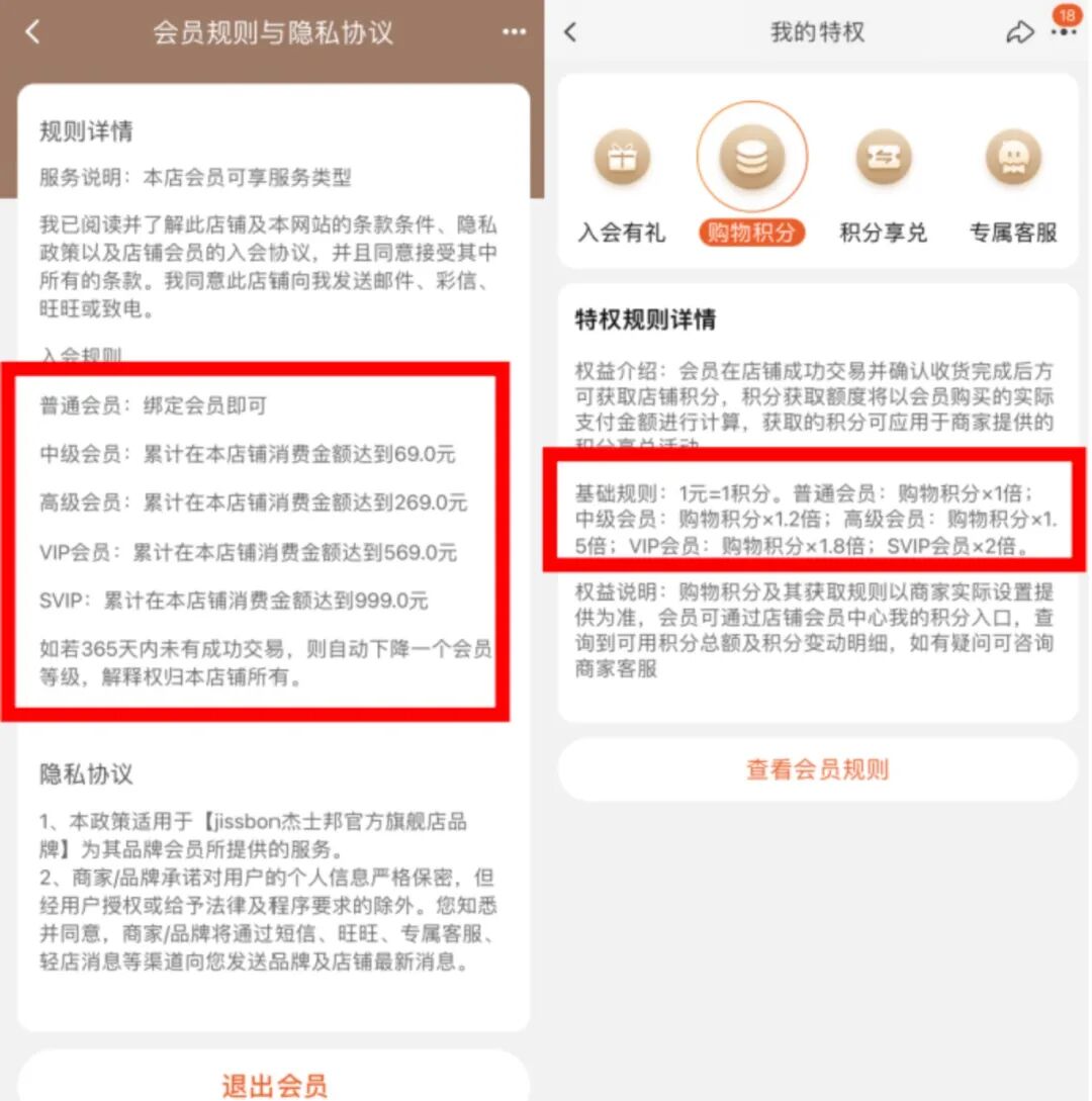 杰士邦電商平臺(tái)的會(huì)員體系相對(duì)完善,主要以成長(zhǎng)會(huì)員+積分體系為主。下面以天貓平臺(tái)的會(huì)員體系為例。